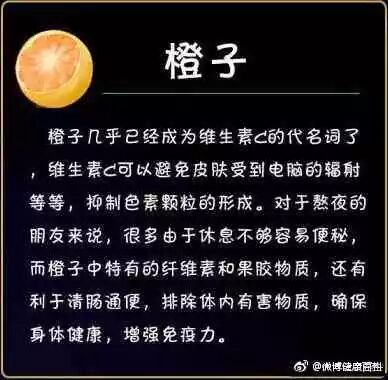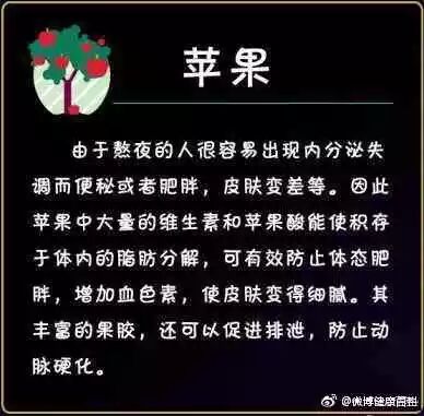 饮食与健康 【八种水果 拯救疯狂“熬夜族”】熬夜违背了正常的生物钟,会给身体制造出一系列的伤害,如黑眼圈、皮肤粗糙暗淡,身体毒素增多,损害肝脏等。几种熬夜应该吃的水果,拯救常熬夜的你