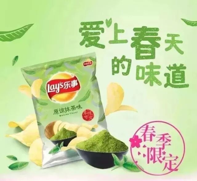 除了樱花味之外,乐事春季限定还有一款抹茶口味的,抹茶控们也了解一下呗~