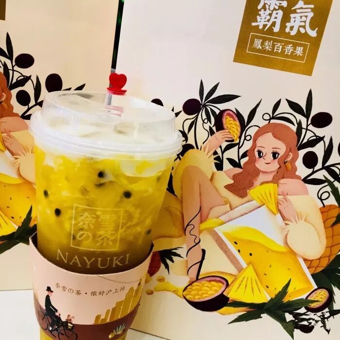 奈雪的茶近日出了一款“巨型钻石茶”,就是百香果+金钻凤梨的组合,以四季春做茶底,再搭配百香果和凤梨,入口都是满满的果肉,微酸中带着清甜,real清爽。