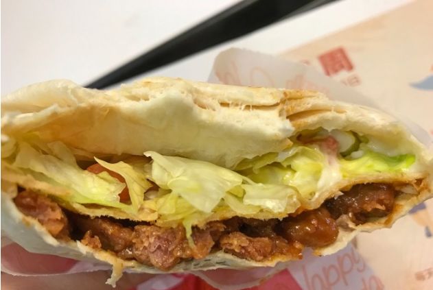 薄薄的外皮里包裹着满满的料:清爽的生菜沙拉,带点儿椒麻味的牛肉和香脆的玉米片,吃上一口,满满的都是回忆里的味道。