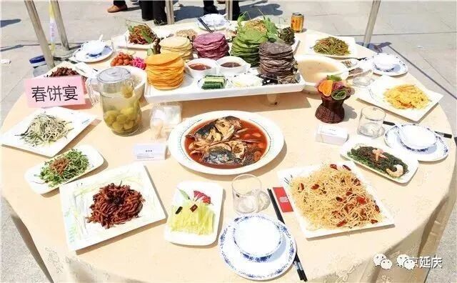 春饼,又叫荷叶饼,是一种烙得很薄的面饼,是中国的传统美食之一。春饼宴最具特色的是五色春饼,除了白面饼还有胡萝卜面、菠菜面等,颜色好看而且更具营养,在膳食营养搭配方面应该更符合现代人追寻健康的要求,配备八个大碗的菜码,象征八方来财。传说吃了春饼和其中所包的各种蔬菜,将使农苗兴旺、六畜茁壮。
