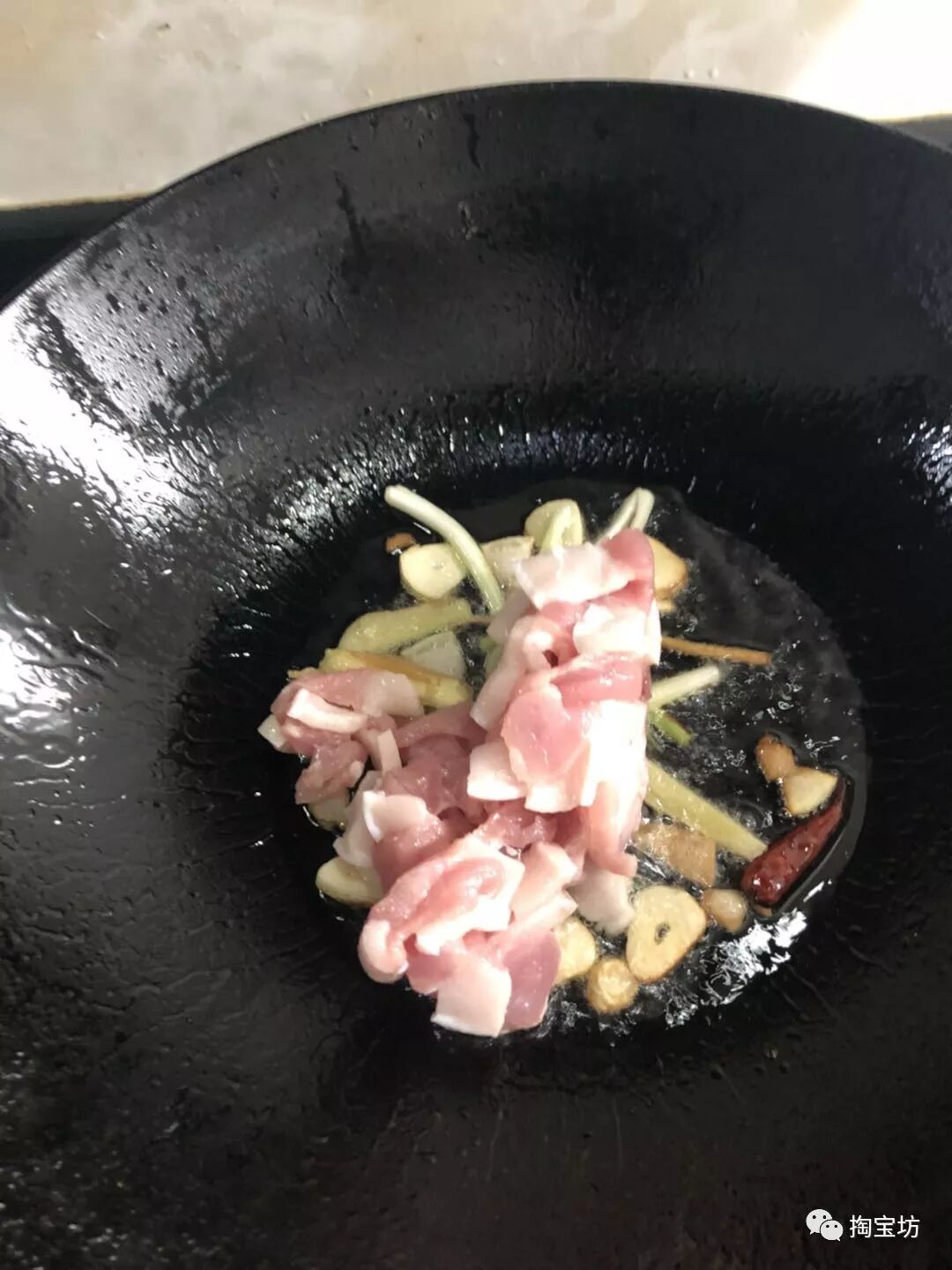 挑肥瘦都有的肉,切非常薄的片,太肥的地方单独拿出来榨油炝锅。