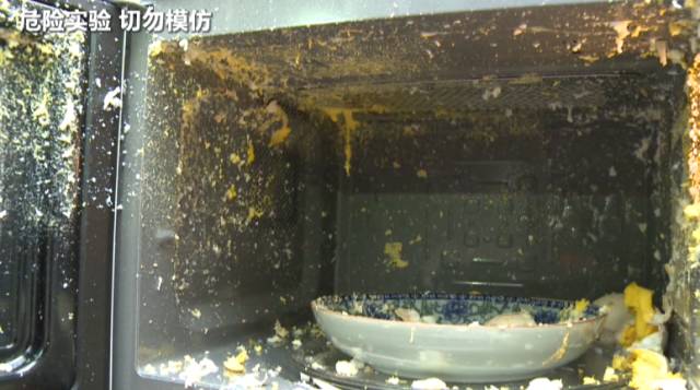 它可能在你正在煮的期间,“砰”的一声炸开,糊满微波炉内壁;
