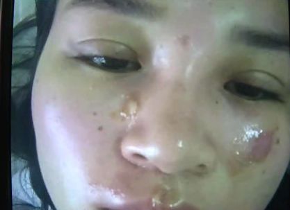 龙小姐的脸部、颈部还有手臂都被烫伤了