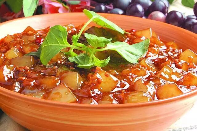 蒜蓉辣酱1勺、甜面酱1勺、醋1勺、糖1勺混合成调味汁;