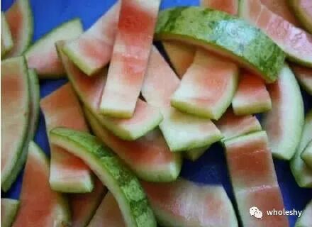 8.西瓜皮的作用优于瓜瓤.中医称瓜皮为”西瓜翠衣”,具有清热解署,泻火除烦,降血压等作用。 对贫血,咽喉干燥,唇裂,以及对膀脱炎,肝腹水,肾炎患者均有一定疗效.另外,因为西瓜皮含有维生素C、E.用它擦肌朕,或将它捣成泥浆状涂在皮肤上,待过10至15分钟后用水洗净,有养肤,嫩肤,美肤和防治痱疖的作用。