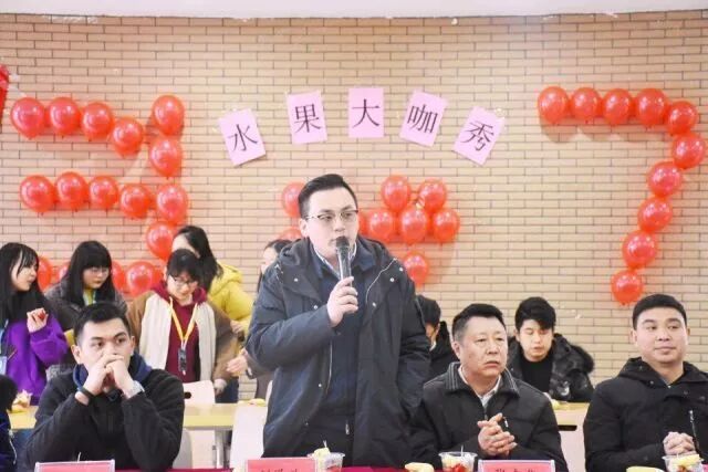 在活动正式开始前,学工处刘处长代表学工处讲话。他说:“水果大咖秀是管理学院的一大特色活动,所以我很期待此次活动。我在这里预祝此次活动顺利举行,也希望每一个参赛的同学在比赛中拿出自己的水平,在比赛中有所收获。”