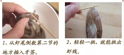 虾背切开,挑出虾线