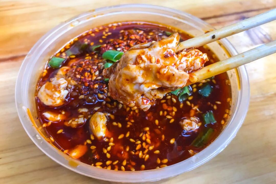 他家的臭豆腐在调料上下得还是挺重的,海椒面、葱花、折耳根…莽起撒,不过这家的臭真心太臭了,巴适妹的小伙伴到后面都有点扛不住咯…