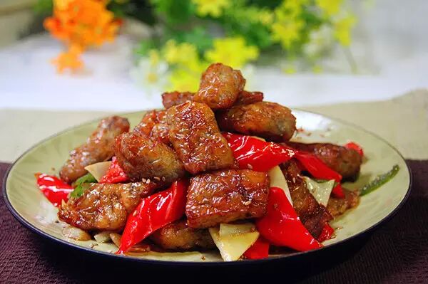 2、干红椒用清水浸泡一下再炒,不容易发黑。
