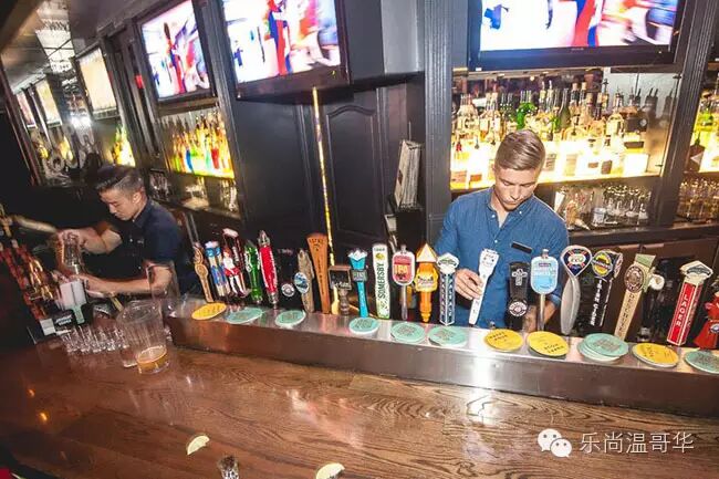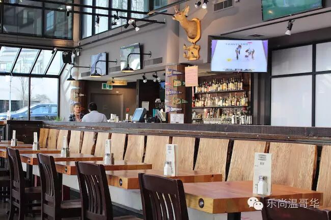 10台电视,酒水推荐其本地手工啤酒系列,食物方面用温哥华岛 smoke sea salt 调成的盐水来泡蛋smoked pickled egg、肉汁鲜美的bison burger、以及创意十足的 brown butter tart 都是老饕们的必点。