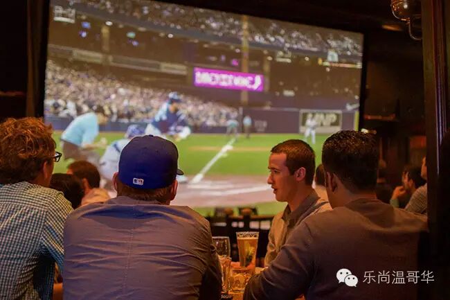 17台电视机和3台投影,还是Donnelly Group旗下的。萨饼、三明治、汉堡一应俱全。16英尺宽的投影仪是亮点。