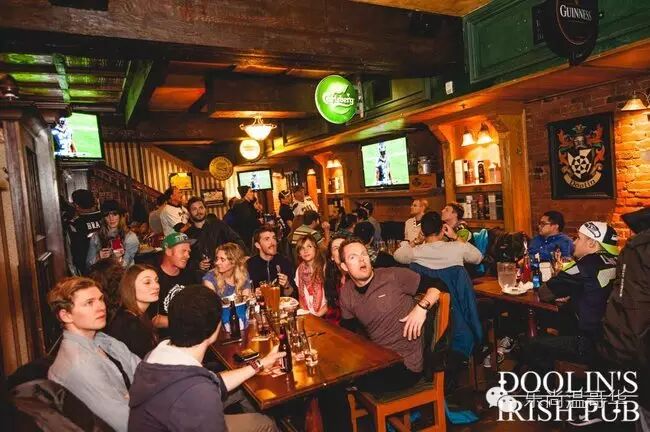 18台电视机和一台投影仪,从上午9点开始,早餐菜单$10.50,从上午11点起啤酒特价$3.91。如果你想为你和你的朋友们在这个繁华的地方观看比赛,只要提前预订,这样你就可以尽情享受比赛了。