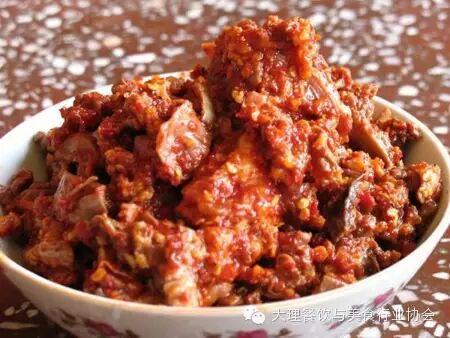 猪酐酢也是和吹肝一样,是地方特色食品。滇西自古流传着这样的顺口溜:“丽江粑粑鹤庆酒,剑川婆姨猪酐酢。”可见鹤庆猪酐酢的知名度是非常高的。这猪酐酢也是在过年前后,家家户户杀年猪时,也是做猪酐酢的最好时机了。将园子里栽种的本地辣子,用盐臼冲好,那纯净的辣子面红得像熟透了的西红柿一样鲜艳入眼,看着就板扎。那吃法也是多种多样的,可以在甑子上蒸了吃,可以作调料,可以煮鱼吃,不管采用什么方法吃,只要放进去一点猪酐酢,炒、炸、溜、煮都是香气袭人,辣香四溢,真是滇西一绝。