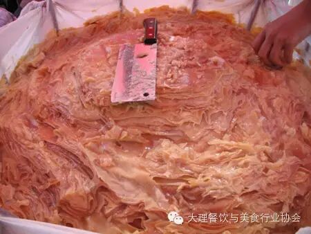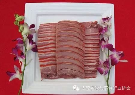 大理生皮是一道独特的美味。生皮,白语又叫“黑格”,逢年过节,白族人招待客人总会有一道非常特色的家常菜,凉拌生皮。 一般生皮生肉有两种吃法:一种是生皮和佐料不搁一起,吃时就着佐料一起吃;一种是将佐料与生皮生肉拌匀,就是一道凉拌生皮。蘸过汁水的生肉片吃到口里,绝对感觉不出平时生猪肉片具有的腥味,感到的只是从未感受过的鲜嫩可口和满口溢香。