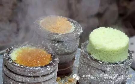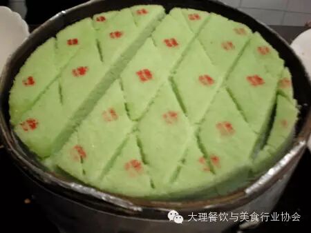 鹤庆米糕,色香味俱全,是当地群众逢年过节、婚丧娶嫁款待宾客或祭祀祖先和神灵的传统食品。鹤庆米糕,制作精细,分干糕和水糕两大类。制作干糕先将上等白米泡软后,压磨成粉,然后用薄荷、橙皮汁加红糖将粉碾细,用细筛筛入甑子内,再用薄刀小心划成2寸、高1.5寸,厚0.5寸的小块,用大火蒸熟。水糕,是高粉制成后,加百分之一的糯米面,蒸发亦如干糕,但不加糖,待糕蒸熟后在把红糖撒在上面,待糖蒸化后在撒上芝麻或苏子而成。干糕,又以喜庆干糕为上品,喜庆干糕又分夹层糕和色糕两种。夹层糕呈菱形,比普通干糕稍厚略大,中有红糖、薄荷、橙皮、枣泥、龙眼的混合夹层;色糕呈正方形,中间有红色腰线,表面为红色罩面,红白分明,质细而美观。蒸米糕若用于待客时,表面加红糖、玫瑰糖;用一祭祖供佛时,糕面须插鲜花。每年清明时节,青蚕豆成熟上市,在米面中渗进豆米粉,糕成绿黄色,食味更佳。这种青豆米糕,多用作上山扫墓和招待嘉宾贵客。