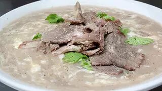 糁汤,又名“肉粥”,是流行于山东鲁西南一带的传统名吃,尤以济宁为最。根据其配料和营养价值的不同,糁汤有三十余类,共一百多个品种。综合味的糁,鲜香薇辣,细细的品味,又稍有一点中药的苦味,食后舌下生津,回味甘甜。