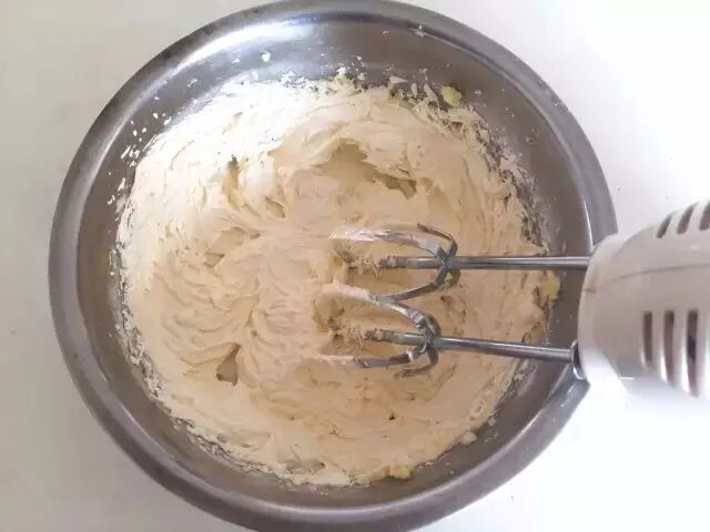 2.黄油室温软化,加入糖粉,先手动搅拌均匀,再用电动打蛋器搅打至轻盈状态。