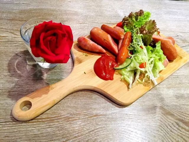 主料:香肠50克、烤肉酱30克