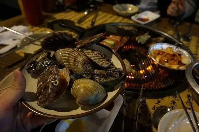 (1)贝类烧烤→25000韩元/人(至少2人份以上)