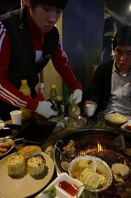 这里的操作大部分需要自己来,但偶尔店员也会帮忙烤的~大部分时候店员都是在负责收客人一桶又一桶的贝壳垃圾。