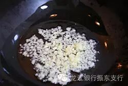锅中倒入适量的油,油热后将一半的蒜末倒入锅中煸炒出香味。