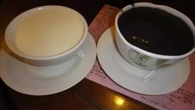 这对黑白双煞,目测白的是南信最出名的甜品双皮奶,可以有冷热两种选择;黑乎乎那碗是芝麻糊,好鬼怀旧的说。