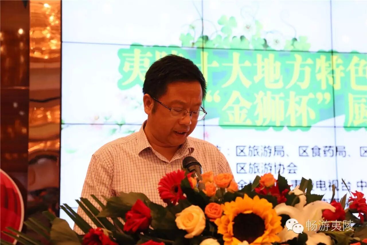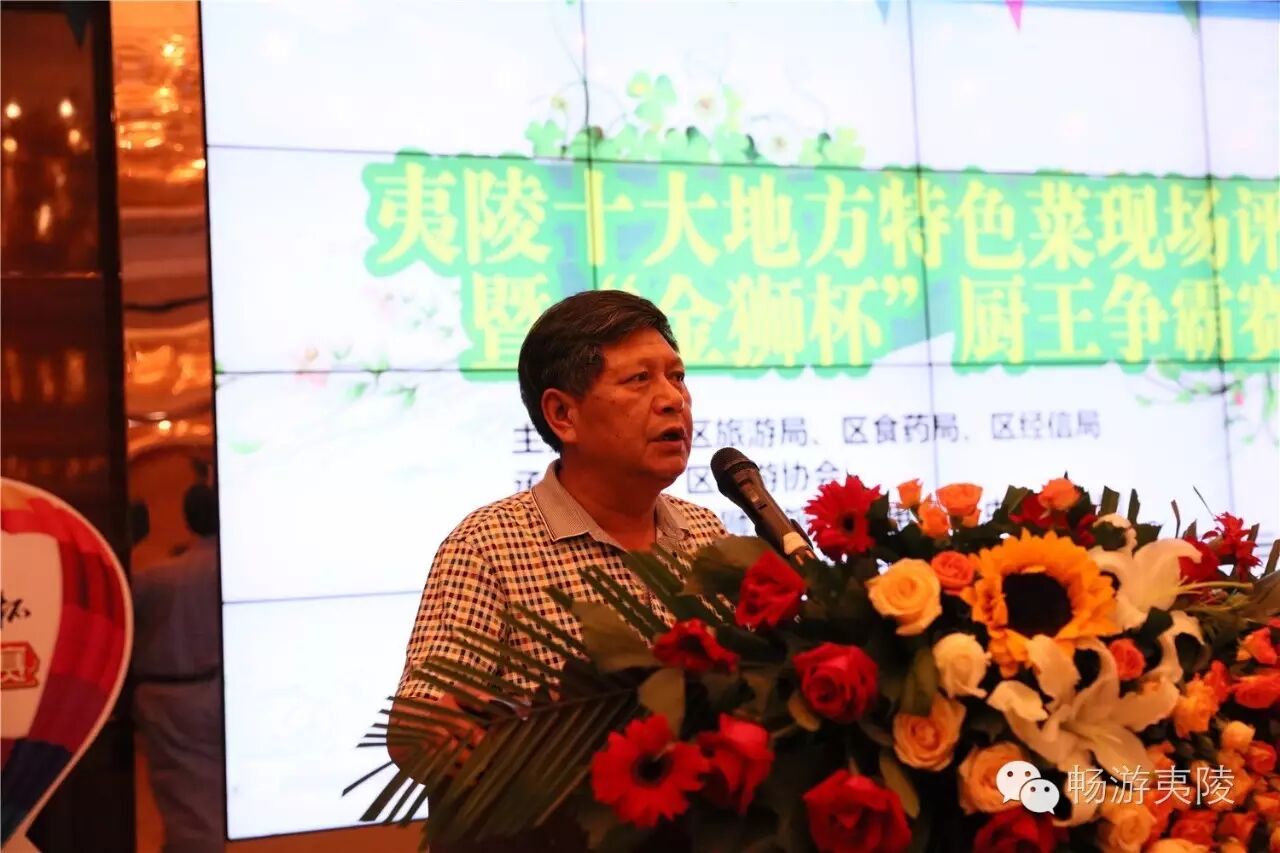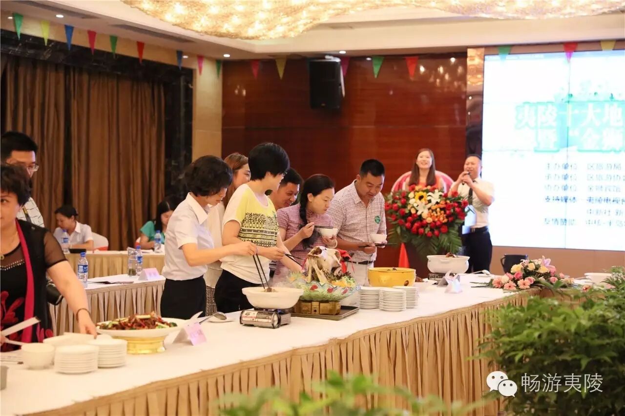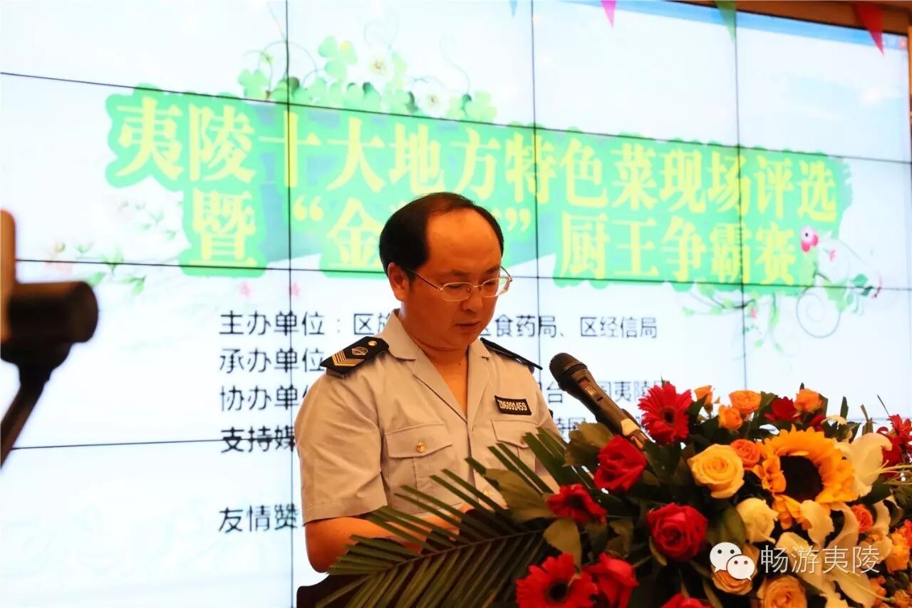 6月15日上午,首届“夷陵十大地方特色菜”现场评选暨“金狮杯”厨王争霸赛在夷陵区金狮宾馆盛大举行,29道“夷陵地方特色菜”惊艳亮相!本次比赛由区旅游局、区食药局、区经信局主办,区旅游协会承办,协办单位为金狮宾馆、夷陵电视台、中国夷陵网。区政协副主席姚维树、区旅游局局长刘艳华、区食药局局长颜尔新、区经信局副局长岳新华、金狮宾馆执行总经理徐静等领导出席本次比赛。7位专家评委、8家媒体评委、22位大众评委、入围本次比赛的30道菜肴(其中4号菜品弃权)的参赛单位代表、厨师、新闻媒体记者、社会人士等200多人共同见证了历史性的时刻。