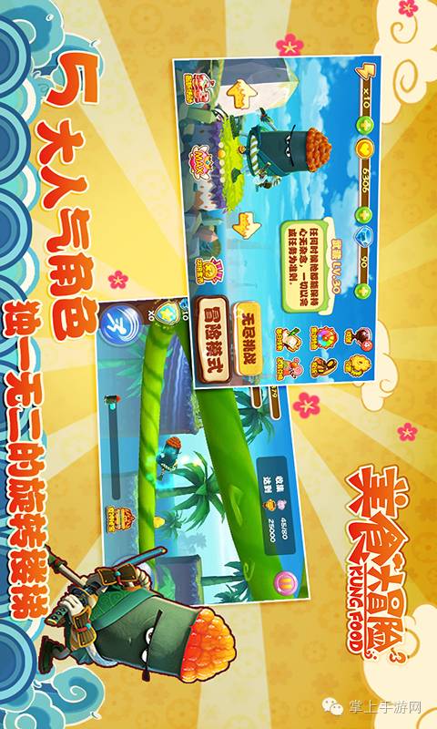 《美食大冒险之文明之旅》是一款由官方正版授权,动作冒险类的3D横版冒险游戏。玩家将和5位蒸盒号上的大侠们展开新的冒险,在神秘未知的欧洲大陆上寻找新的食族文明。然而悲剧海盗也紧随其后,打败他们!防止塔么于以及他的新老大夺走蒸盒号!新奇的食族造型、原声的配音音乐、酷炫的打击特效、惊险刺激的关卡体验。各种还原的动画设定带你进入美食大冒险中的神奇世界中去!