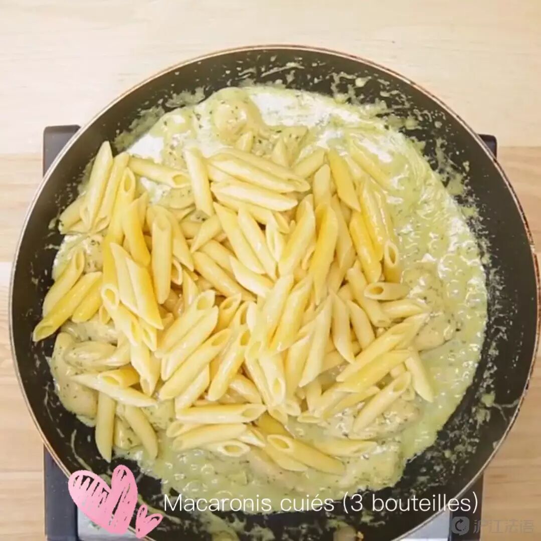 将通心粉倒入平底锅