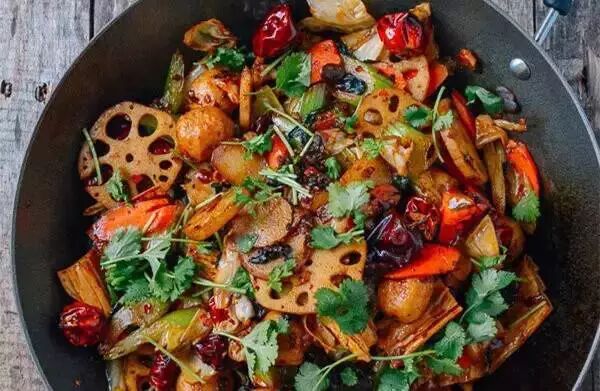 麻辣香锅,怕胖又爱吃辣的人应该会喜欢吧,因为基本都是素菜。遇上你的冰箱需要集中打扫的时候,这道菜就特别适合,因为什么东西都可以往里放。居家必会的一道菜。