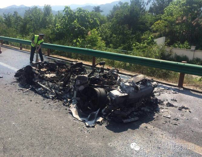正在事发地点不远的鄂东省际卡口民警迅速赶到现场救援,民警试图用随车携带的灭火器灭火,无奈天气炎热且车辆燃烧迅猛,直到消防车辆赶来才将大火扑灭,而此时车辆只剩下一副空架子。