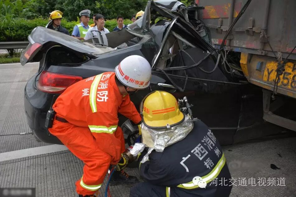 6月16日上午,梧州岑罗高速岑溪市仲林服区附近一辆小轿车追尾撞上一辆大货车,造成1人受伤。