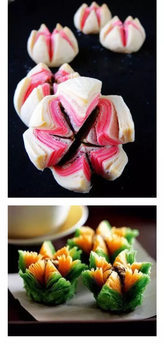 她的原料虽然只是普通面粉和红豆但是成品相当精美呢,还真像盛开的荷花呐!