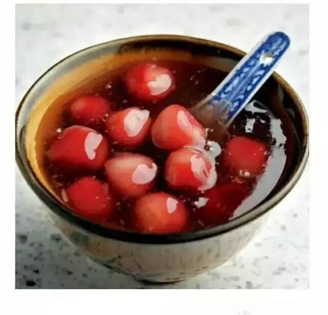 原料为芋头,用桂花糖浆煮过之后,再加入菱角粉和藕粉。剔透的暗红色,这么美丽的甜品萌小粮都有点舍不得吃呢......