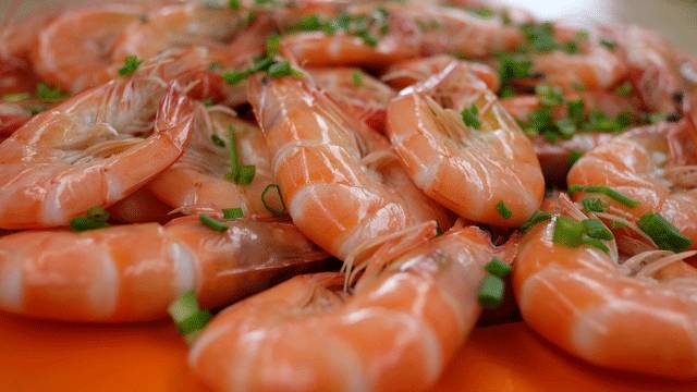 3、水开后,倒入虾2-3分钟即可,捞起装盘。