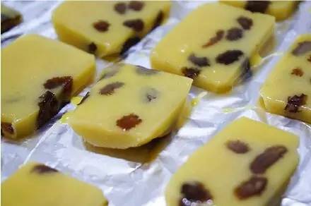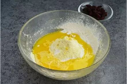 食材:低筋面粉120克、鸡蛋液40毫升、葡萄干40克、奶粉8克、黄油60克、细砂糖35克;